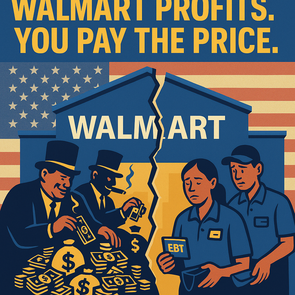 - Walmart pays such low wages that taxpayers subsidize their workers through food stamps and Medicaid—while the Walton family sits on $250+ billion.